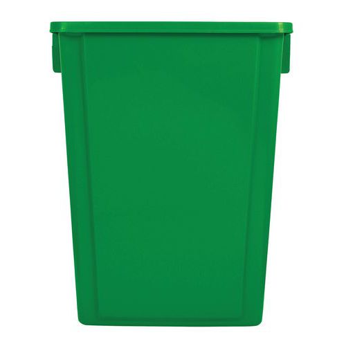 Rechthoekige afvalverzamelaar voor gebruik in kleine ruimtes. Eenvoudig te verplaatsen dankzij de handgrepen. Nestbaar, dus neemt weinig plaats in beslag bij opslag. Eenvoudig te reinigen