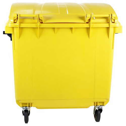 Afvalcontainer Manutan van polyethyleen met hoge dichtheid (PEHD) bestand tegen uv-straling. Eenvoudig te verplaatsen dankzij 4 zwenkwielen (Ø 200 mm), waarvan 2 met rem. Handgrepen aan 3 zijden voor meer wendbaarheid. Eenvoudig in het onderhoud. Product conform de EN 840-norm.