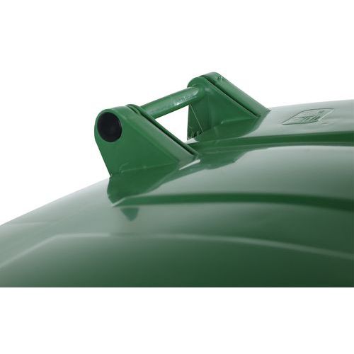 Af(HDPE) stabilizzato ai raggi UV. Facile da manovrare grazie a 4 ruote girevoli (Ø 200 mm), di cui 2 con freno. Maniglie su 3 lati per una maggiore maneggevolezza. Facile da pulire. Manutan-afvalcontainer van UV-gestabiliseerd hogedichtheidpolyethyleen (HDPE). Eenvoudig te hanteren dankzij 4 zwenkwielen (Ø 200 mm), waarvan 2 met rem. Handgrepen aan 3 zijden voor meer wendbaarheid. Eenvoudig te reinigen.