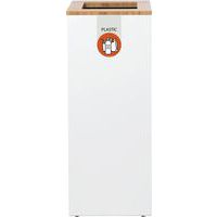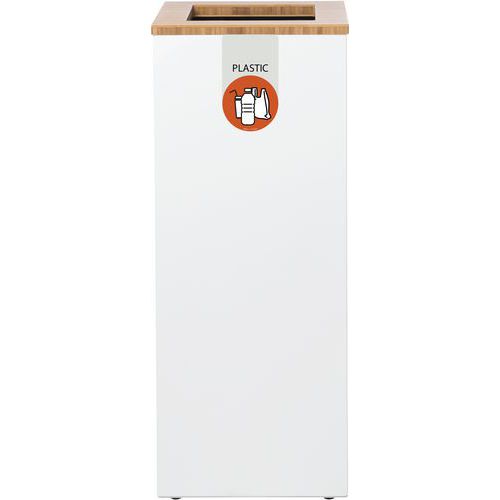 - Afvalinzamelingsunit van gegalvaniseerd staal met stijlvolle en duurzame bamboe open top met gekleurde fractieaanduiding en label.