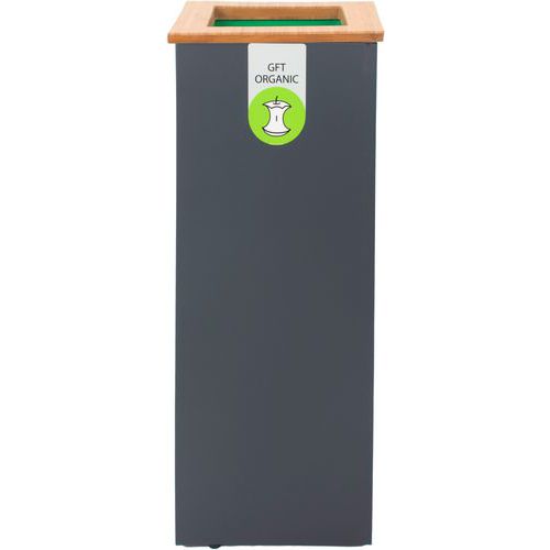 - Gegalvaniseerd stalen recyclingstation met elegant en duurzaam open deksel van bamboe, met stroomindicatie en gekleurd label