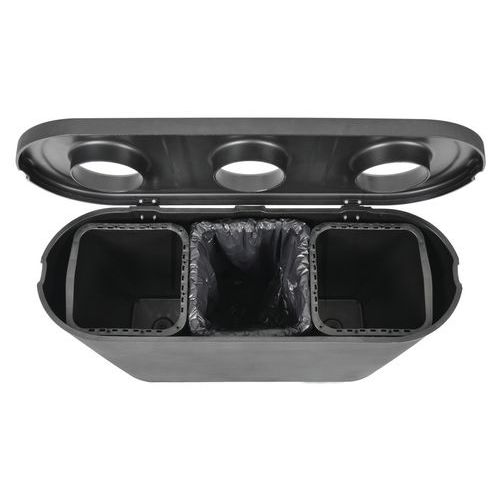 Voorzien van 3 individuele waterdichte binnenemmers (3 x 45 liter) van kunststof, die eenvoudig geleegd kunnen worden door het deksel te openen.