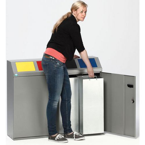 Afvalscheidingsstation met 2 deuren en verwijderbare containers.