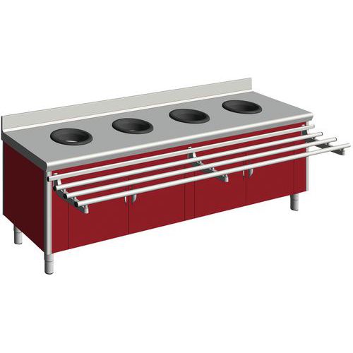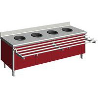 Afvalscheidingsunit voor kinderen aan de muur met 4 afvalgaten, Kleur: Rood, Type: Voorsorteerkast/tafel