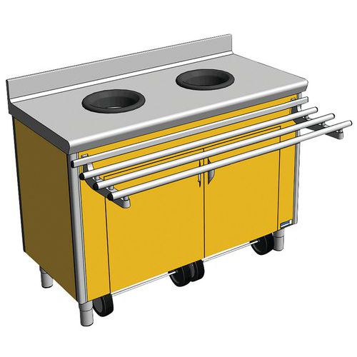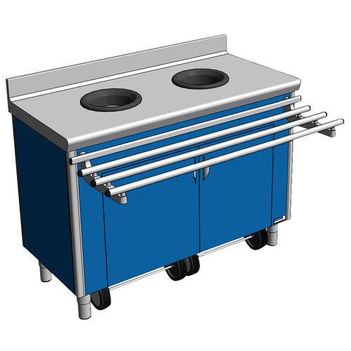 Voor volwassenen Uitgerust met 2 afvalgaten Geleverd met 2 zakhouders Rechter achterwand hoogte 10 cm. Afmetingen l x h x d cm: 128 x 60 x 90 cm.