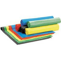 - Afvalzakken van 400 liter, ideaal voor het verzamelen van folie. Gemaakt van LDPE. Verpakt op rollen van 7 zakken, 12 rollen per doos. Elke zak kan ongeveer 18 kg folie bevatten. De zakken zijn geperforeerd en onbedrukt.
