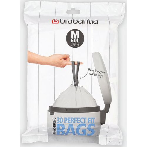 Een Perfect passende Brabantia PerfectFit afvalzakken in dispenserverpakking voor elke bak van Brabantia bijvoorbeeld bij pedaalemmers, prullenbakken, afvalemmers, Touch Bins etc.