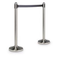 Roestvaststalen designpaal met uittrekbaar afzetkoord en verzwaarde voet. Het koord kan worden bevestigd op de kap van een andere afzetpaal of aan de wandbevestiging die bij de paal wordt geleverd.