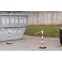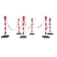 - Set van afzetpalen met ketting voor het eenvoudig tijdelijk of permanent markeren van een zone of toegang.