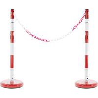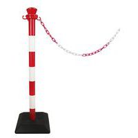 - Paal van polyethyleen met bevestigingsogen voor eenvoudige bevestiging van de meegeleverde ketting. Ketting van 10 m. Goed zichtbaar dankzij de twee kleuren. Modulaire installatie, zeer eenvoudig. Zwarte bodemplaat. Rood/witte palen.