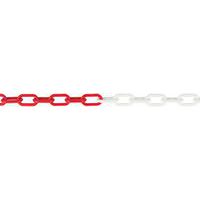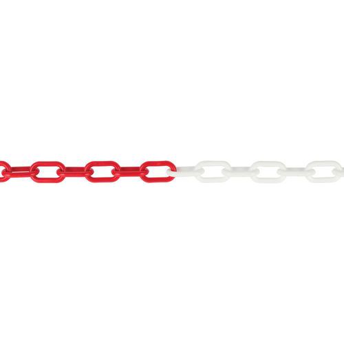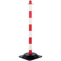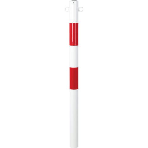 Paal van polyethyleen met bevestigingsogen voor eenvoudige bevestiging van de meegeleverde ketting. Ketting van 10 m. Goed zichtbaar dankzij de twee kleuren. Modulaire installatie, zeer eenvoudig. Zwarte bodemplaat. Rood/witte palen.