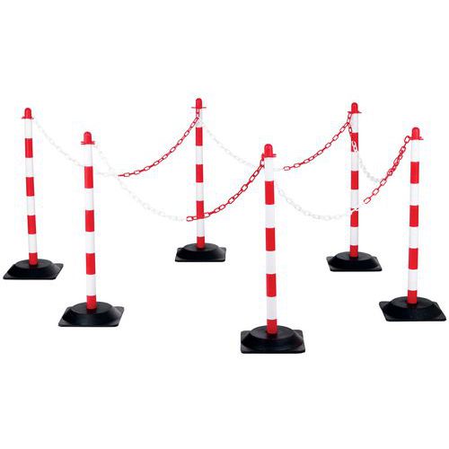 Paal met sokkel en ketting van polyethyleen - set van 6 - Crash Stop