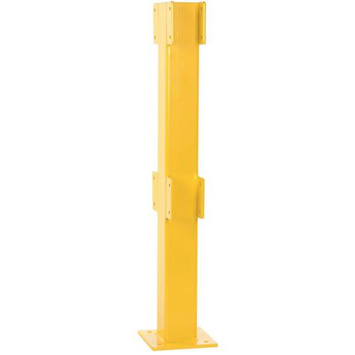 Stalen paal voor veiligheidshek, volledig aanpasbaar aan uw pand. Gele kleur voor een goede zichtbaarheid. Gegarandeerde stabiliteit dankzij de bevestiging op de vloer met plaat. Gemaakt van gegalvaniseerd staal voor gebruik binnenshuis.# TÜV-certificaat. Eenvoudige installatie.