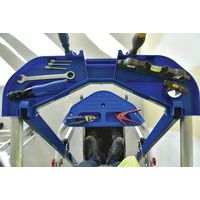 Met 2 legborden met vakken: 1 hoog legbord met grote capaciteit, in gebogen vorm om zo dicht mogelijk bij de muur te kunnen werken, uitgerust met 2 haken om emmers aan te hangen en geïntegreerde transporthandgreep, 1 laag legbord geschikt voor een vat van 15 l.