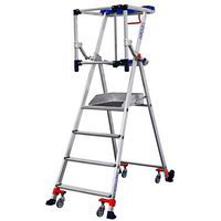 Afzonderlijk aluminium platform met vaste hoogte, ultramobiel van de nieuwe generatie. Installatie van de reling met één gebaar. Bescherming aan de achterzijde met stijve en scharnierende reling. Comfortabel en efficiënt met 2 seriële legborden met vakken. Zeer eenvoudig te verplaatsen in open stand dankzij de 4 zwenkwielen. Bovenste legbord met grote capaciteit en gebogen vorm om zo dicht mogelijk bij de muur te werken. 2 emmerhaken en geïntegreerde draaggreep. Max. belasting (kg) : 150 kg Klantgarantie : 5 jaar