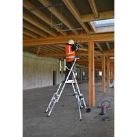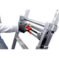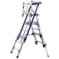 Telescopisch aluminium platform dat de mogelijkheid biedt om op verschillende hoogtes te werken. Direct uitvouwen. Toegang via antisliptreden. Installatie van de reling met één gebaar. 2 standaard legborden met vakken. Onderste legbord geschikt voor vat van 15 liter. Geoptimaliseerde afmetingen. Eenvoudig te verplaatsen op de bouwplaats. Intuïtieve hoogteverstelling: schuifvlakken bediend met handmatige bediening (gepatenteerd) met automatische vergrendeling. Zeer eenvoudig in te zetten millimeterstabilisatoren. Installatie in oneffenheden. Klantgarantie : 5 jaar Max. belasting (kg) : 150 kg
