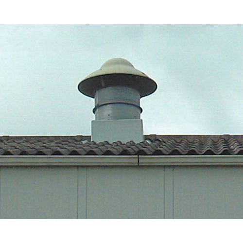 - Axiale ventilator, gemonteerd op een voetstuk in gegalvaniseerd plaatstaal.