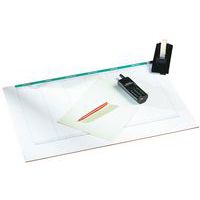 Semi-transparante bureauonderlegger met niet-reflecterend oppervlak.