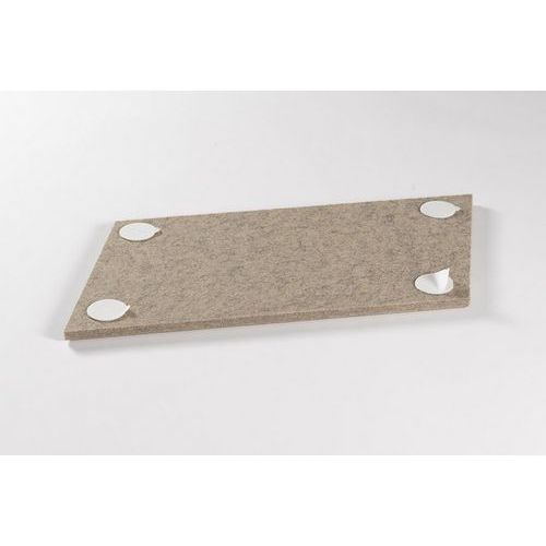 Akoestische wandtegels, parallellogram, vilt. Te gebruiken als mededelingenbord. De schuine randen geven een 3D-diepte-effect. Eenvoudige bevestiging van de tape voor verschillende oppervlakken. Akoestische waarde: NCR = 0,3. Totale oppervlakte: ± 1,25 m². Gemaakt in Nederland