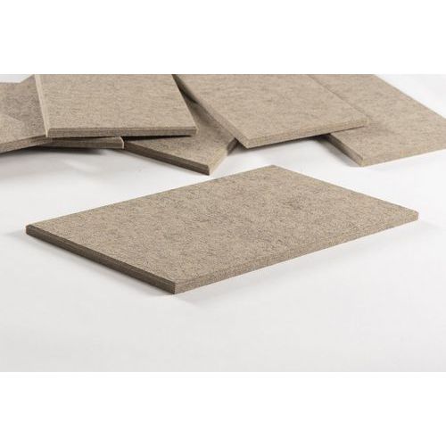 Akoestische wandtegels, parallellogram, vilt. Te gebruiken als mededelingenbord. De schuine randen geven een 3D-diepte-effect. Eenvoudige bevestiging van de tape voor verschillende oppervlakken. Akoestische waarde: NCR = 0,3. Totale oppervlakte: ± 1,25 m².