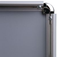 Zeer stevige aluminium houder voor mededelingen. Eenvoudig te gebruiken: de houder voor mededelingen is eenvoudig te plaatsen en te verwijderen door de 4 randen van de aluminium lijst te openen en te sluiten. De displayinhoud is beschermd door een film en blijft toegankelijk. Afgeronde hoeken voor meer veiligheid.