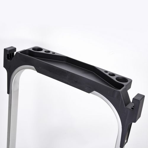 - De treden van 20 x 36 cm, de leuning en de gereedschapshouder met emmerhaak maken de STEP UP tot een veilig en comfortabel opstapkrukje.