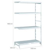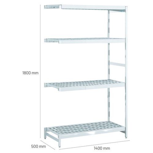 Hoge stelling, bestand tegen extreme temperaturen. Van geanodiseerd aluminium en opengewerkte legborden van polystyrol. Perfect te onderhouden dankzij de vaatwasmachinebestendige rekken. Verstelbare poten voor het gelijkmaken van oneffenheden op de vloer. Eenvoudig te monteren stelling voor eenvoudige en snelle montage. Ideaal in de voedingsmiddelenindustrie, horeca, restaurants, kantines, enz.