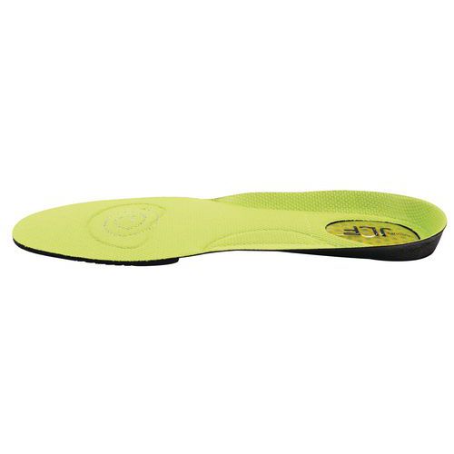 Anatomische, thermisch gevormde zool voor een optimale ondersteuning van de voet Gelcapsule om schokken ter hoogte van de hak op te vangen. De S3F®-behandeling voorkomt de ontwikkeling van bacteriën en schimmels. Geventileerde zool voor comfort dankzij een goede absorptie van transpiratievocht. Antistatisch en slipvast.
