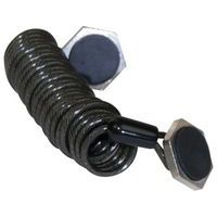 - De kabel in versterkt staal is spiraalvormig en uittrekbaar tot 2 meter.