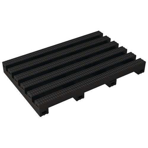 Rol met antislip- en antivermoeidheidsrooster van pvc. Buisvormige constructie voor meer flexibiliteit en comfort. Robuust en bestand tegen chemische producten, oliën en zuren. Verzekert een uitstekende afvoer van vloeistoffen en kleine vuildeeltjes. Zwart soepel rooster, licht in gebruik, eenvoudig te plaatsen.