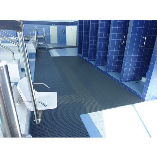 Rol met antisliprooster voor gemeenschappelijke ruimtes. Hygiënisch met niet-poreus materiaal en antimicrobiële, schimmelwerende additieven. Innovatief concept voor een ultra-efficiënte waterafvoer. Eenvoudig te versnijden, te plaatsen en te verwijderen roosters. Antislippatroon voor een uitstekende stabiliteit.