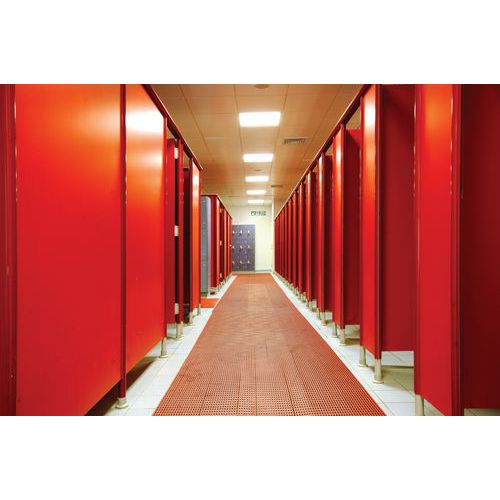 Rol met antisliprooster voor gemeenschappelijke ruimtes. Hygiënisch met niet-poreus materiaal en antimicrobiële, schimmelwerende additieven. Innovatief concept voor een ultra-efficiënte waterafvoer. Eenvoudig te versnijden, te plaatsen en te verwijderen roosters. Antislippatroon voor een uitstekende stabiliteit.
