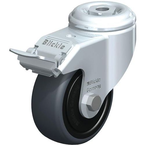 Apparatenzwenkwiel met boutgat rubber loopvlak polypropyleen velg, Max. belasting: 65 kg, Ø: 80 mm, Rem: ja