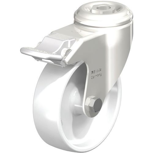 Apparatenzwenkwiel rvs met boutgat met rem stop-fix wiel van polyamide