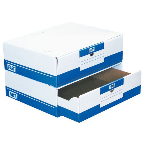 | Productnaam | Archiefdoos met lade, Materiaal: Karton, Kleur: Blauw, Totale lengte: 28 cm, Totale hoogte: 14 cm |