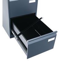 De kantelbeveiliging verhindert dat u per ongeluk meerdere laden tegelijk opent. Dankzij de handgreep over de hele breedte hebt u altijd een goede grip. Klassieke archiefkast met laden voor mappen in de formaten A4, folio en groot folio. Het product is voorzien van een basis voor elke lade. Het ladeblok kan worden vergrendeld met een meegeleverde sleutel (1 set van twee sleutels). Veiligheidstips: - Plaats het meubel op een vlak oppervlak - Bevestig het aan de muur of een scheidingswand met een speciale bevestiging - Let erop dat u de aanbevolen maximale belasting niet overschrijdt en zorg voor een goede verdeling - Product met vergrendeling dat 50 hangmappen kan dragen.