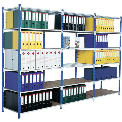 Archiefstelling ontworpen voor maximaal gebruik van de opslagcapaciteit. Uitbreidbaar en modulair met toevoeging/verplaatsing van de legborden zonder het geheel te demonteren. Buislegbord, volledig gelast, eenvoudig te bevestigen in de palen. Zeer stabiel, kruisschoor niet nodig voor enkelzijdig of dubbelzijdig gebruik. Archiefstelling, eenvoudig te monteren, zonder schroeven, bouten en gereedschap. Ideaal voor ordners, boeken en archiefdozen