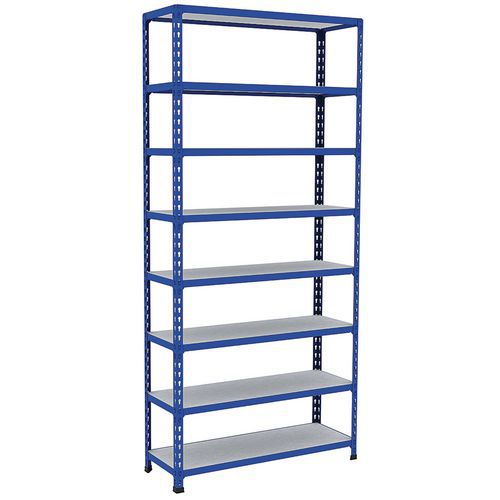 Eenvoudige, bijzonder robuuste stelling Geschikt voor opslag van grote archiefdozen. Dicht legbord van verzinkt staal, zeer bestendig materiaal voor alle soorten omgevingen. Staander en ligger afgewerkt met epoxylak, eenvoudig te onderhouden, blauw of lichtgrijs. Magazijnlegbord, eenvoudige en snelle montage, zonder speciaal gereedschap.