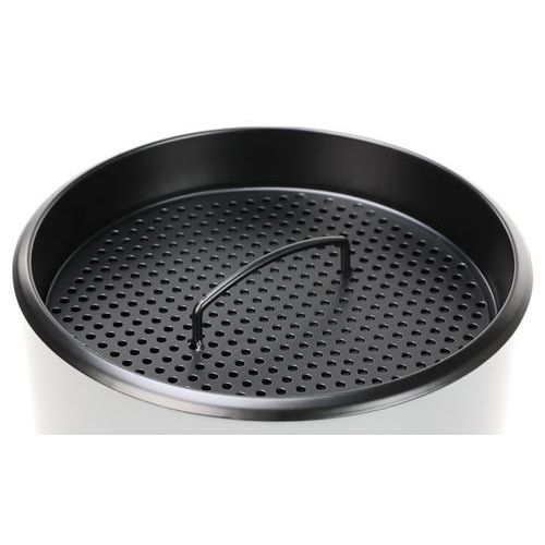 Ronde brandwerende as-afvalbak met metalen binnenkant. Uitgerust met een zeef en een zwarte plaat. Rooster dat de peuk eenvoudig dooft. Handgreep aan de bovenkant voor eenvoudig legen.