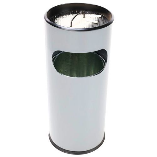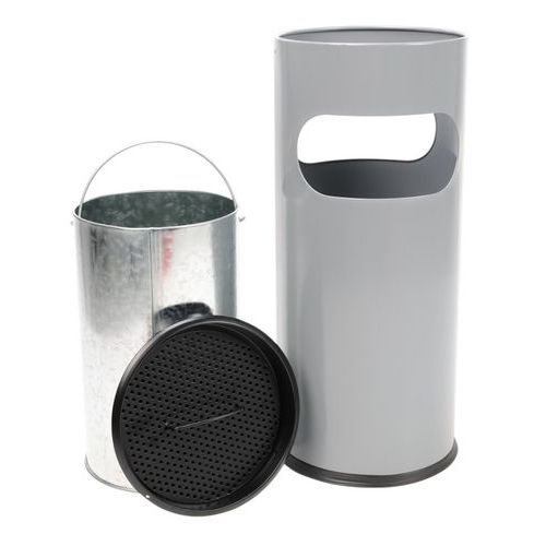 Ronde brandwerende as-afvalbak met metalen binnenkant. Uitgerust met een zeef en een zwarte plaat. Rooster dat de peuk eenvoudig dooft. Handgreep aan de bovenkant voor eenvoudig legen. Klantgarantie : 10 jaar