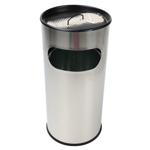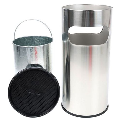- Ronde brandwerende as-afvalbak van rvs met metalen binnenkant.