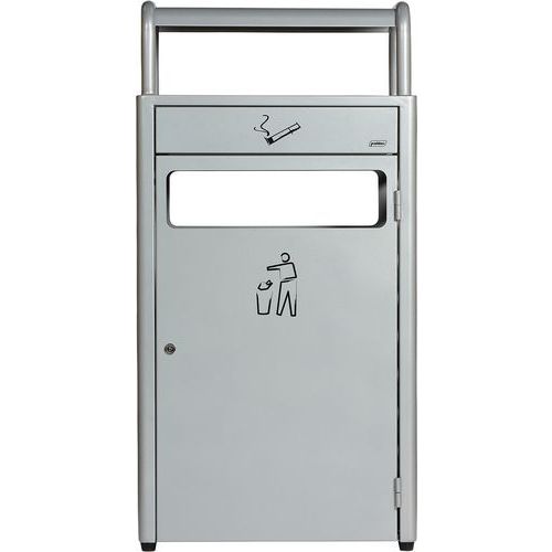 Combinatie van asbak en afvalbak voor het weggooien van lege verpakkingen, blikjes of ander klein afval.