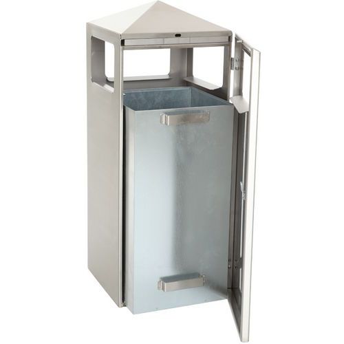 As-afvalbak Pyramide met robuuste basis_V-Part, Vuilnisbak inhoud: 120 L, Kleur: Zilver, Materialen: Rvs As-afvalbak Pyramide met robuuste basis_V-Part, Vuilnisbak inhoud: 120 L, Kleur: Zilver, Materialen: Rvs