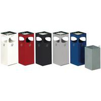 Gebruiksvriendelijke as-afvalbak met 4 grote openingen en plateau met asbak. Gemaakt van gegalvaniseerd plaatstaal met fraaie epoxylakcoating. Bescherming van hoge randen en vloer om beschadigingen te voorkomen.