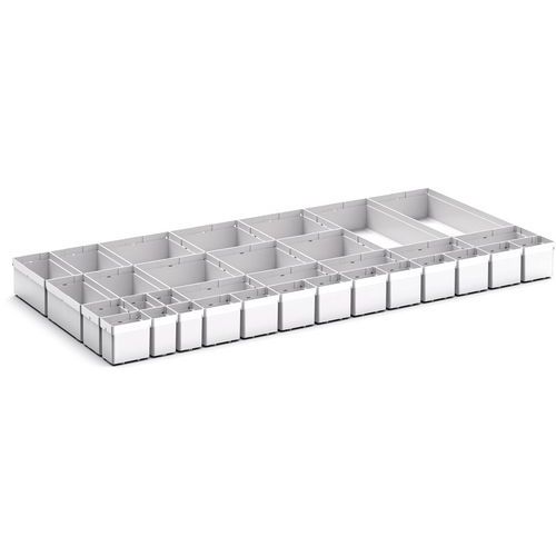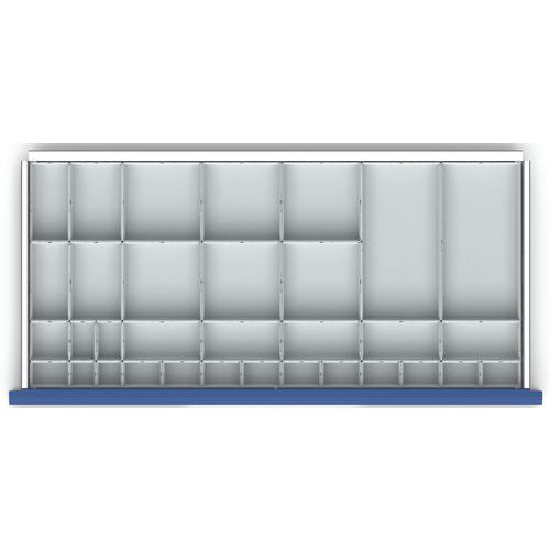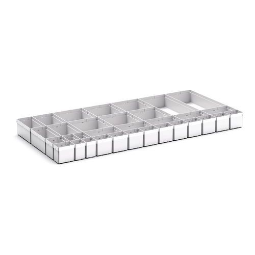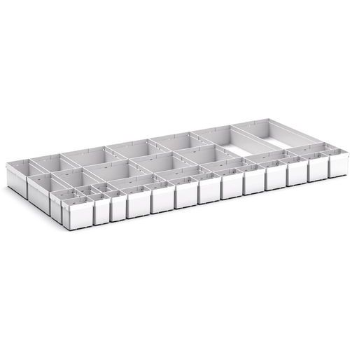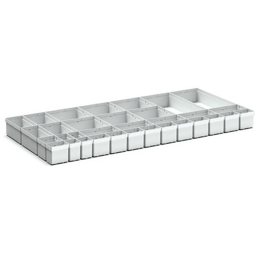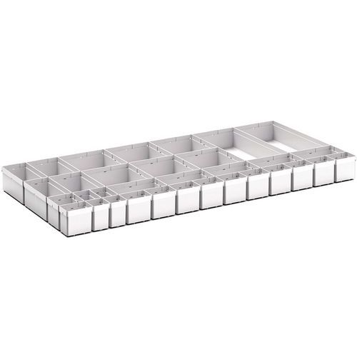 | Productnaam | Assortiment 33 kleingoedbak, Breedte: 1050 mm, Diepte: 550 mm, Hoogte: 100 mm, Kleur: Lichtgrijs |