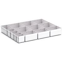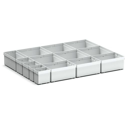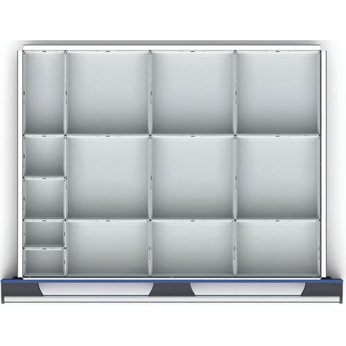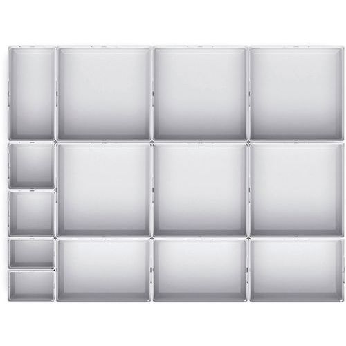 | Productnaam | Assortiment EKK-65100. 14 kleingoedbak, Breedte: 650 mm, Diepte: 525 mm, Hoogte: 100 mm, Kleur: Lichtgrijs |