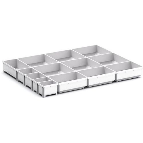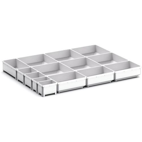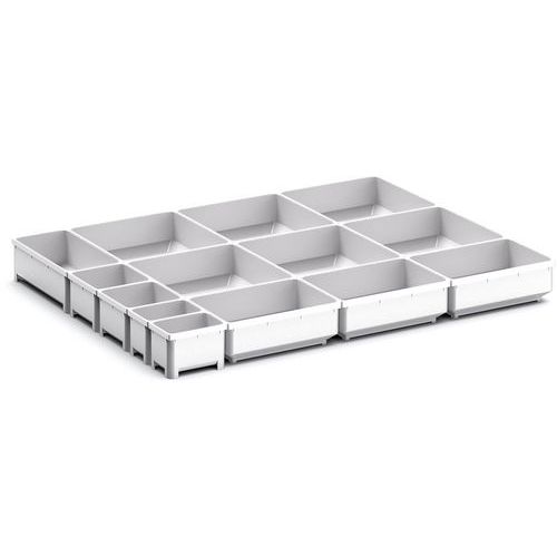 | Productnaam | Assortiment EKK-6575. 14 kleingoedbak, Breedte: 650 mm, Diepte: 525 mm, Hoogte: 75 mm, Kleur: Lichtgrijs |