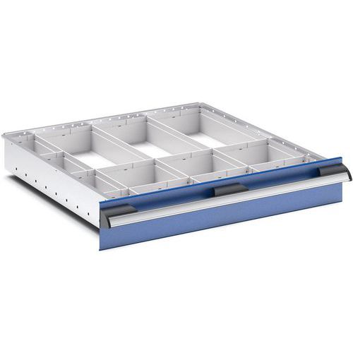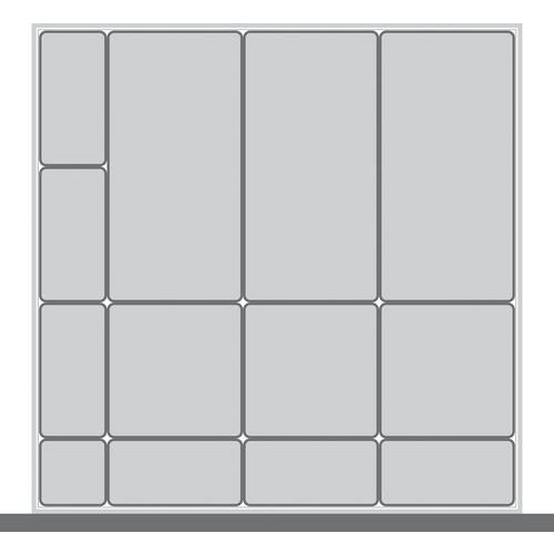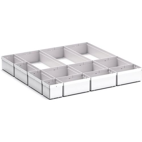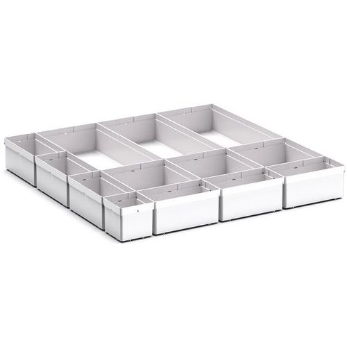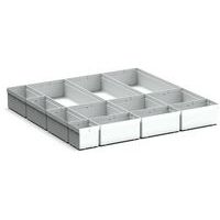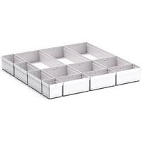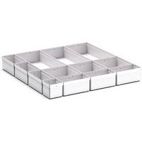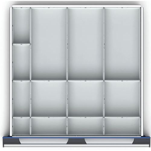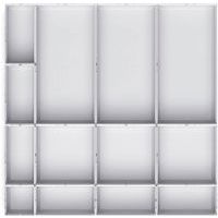 | Productnaam | Assortiment EKK-66100. 13 kleingoedbak, Breedte: 650 mm, Diepte: 650 mm, Hoogte: 100 mm, Kleur: Lichtgrijs |