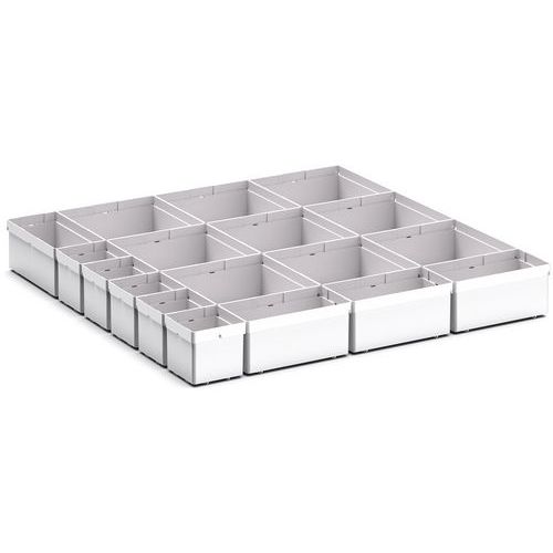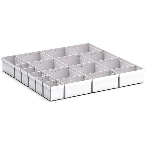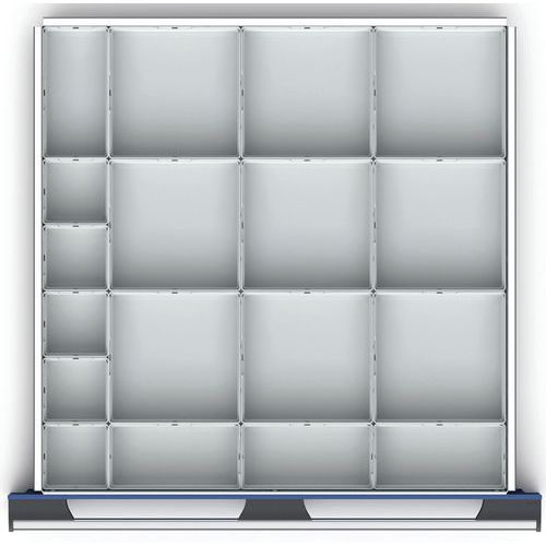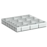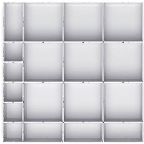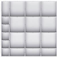 | Productnaam | Assortiment EKK-66100. 18 kleingoedbak, Breedte: 650 mm, Diepte: 650 mm, Hoogte: 100 mm, Kleur: Lichtgrijs |