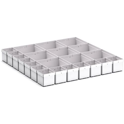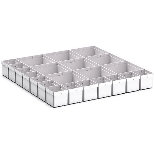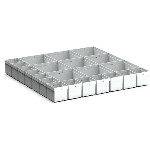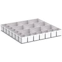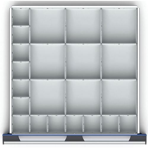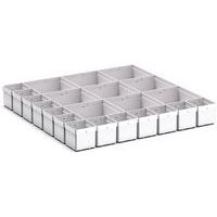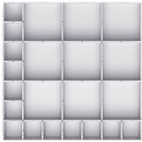 | Productnaam | Assortiment EKK-66100. 22 kleingoedbak, Breedte: 650 mm, Diepte: 650 mm, Hoogte: 100 mm, Kleur: Lichtgrijs |